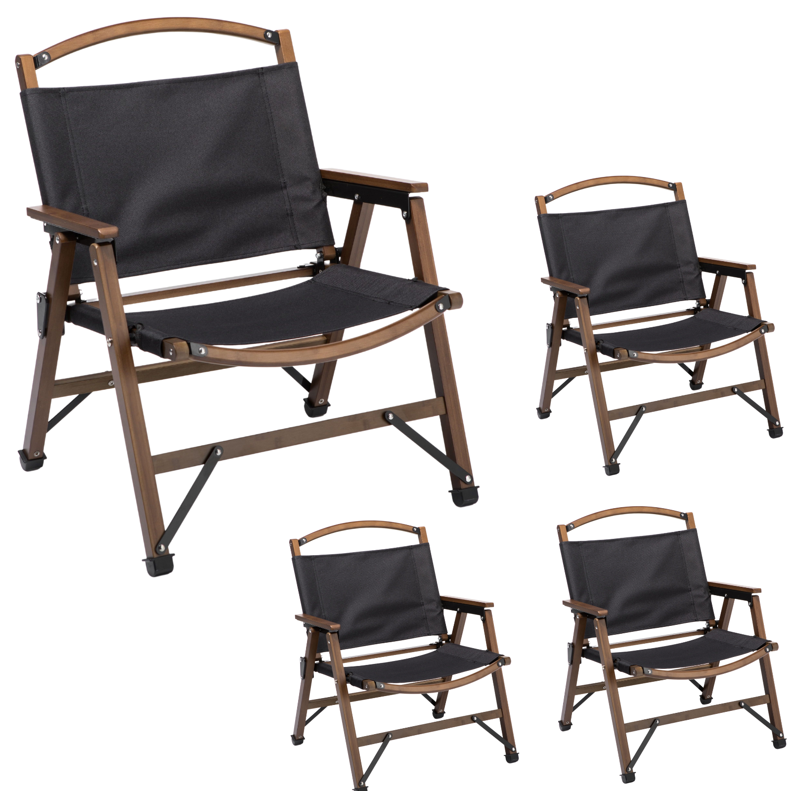 4x Bamboo Canvas Foldable Outdoor Camping Chair Wooden Travel Picnic Park - Black