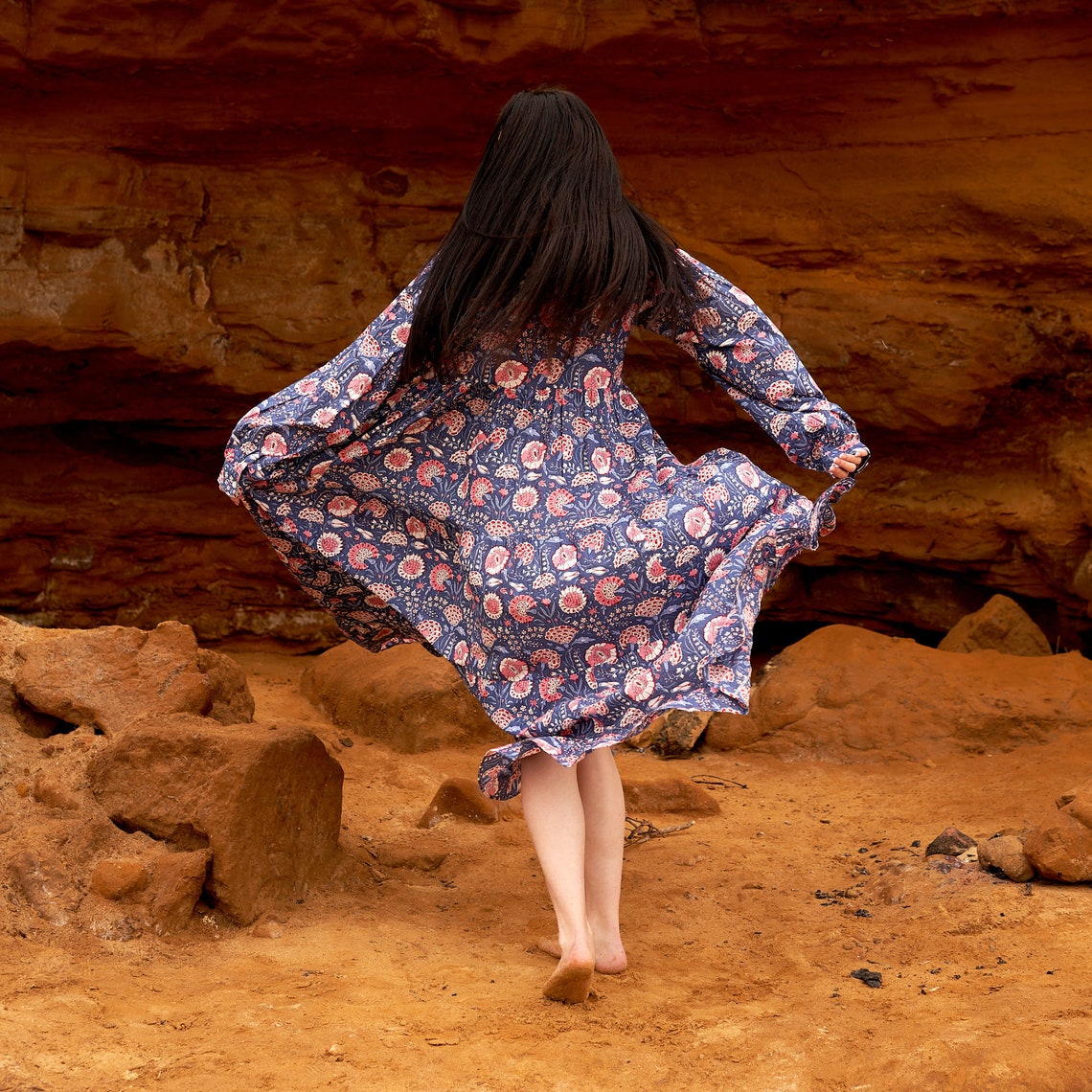 Update pYou will fall in love with this gorgeous piece our boho maxi dress is bright, breezy and light. The elegant floral and framed design makes this dress timeless.ppBarefoot at the beach or style with a little heel, this easy-wear piece will have you feeling confident and relaxed whatever the occasion and these are perfect for any seasonpulliThis dress is made 100 cotton. The fabric is screen printed by hand.liliAvailable in size SM , LXL.liliLength of each is approx 50 inches 120cm.liliBust sizeliliSM - 40 inches.liliLXL - 44 inches.liliOur customers adore this lovely fabric.li