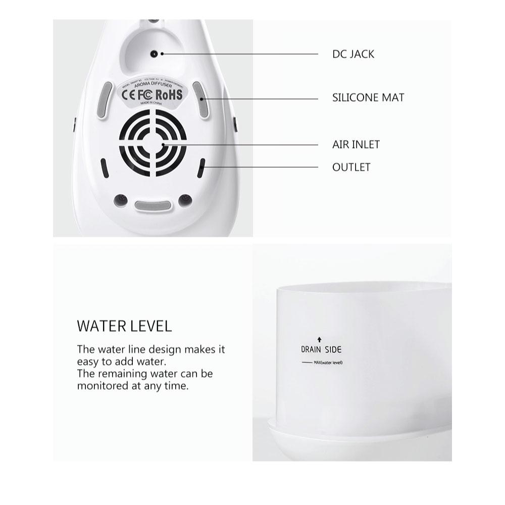 By adding 3~4 drops of various kinds of essential oils into the water, it will mix fragrance with water mist and has the effect of removing the dust & peculiar smells as well as adding amazing aroma and fragrance.