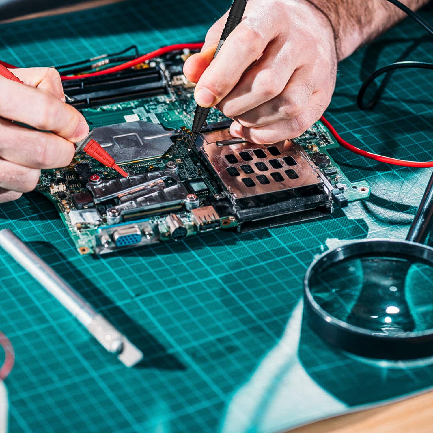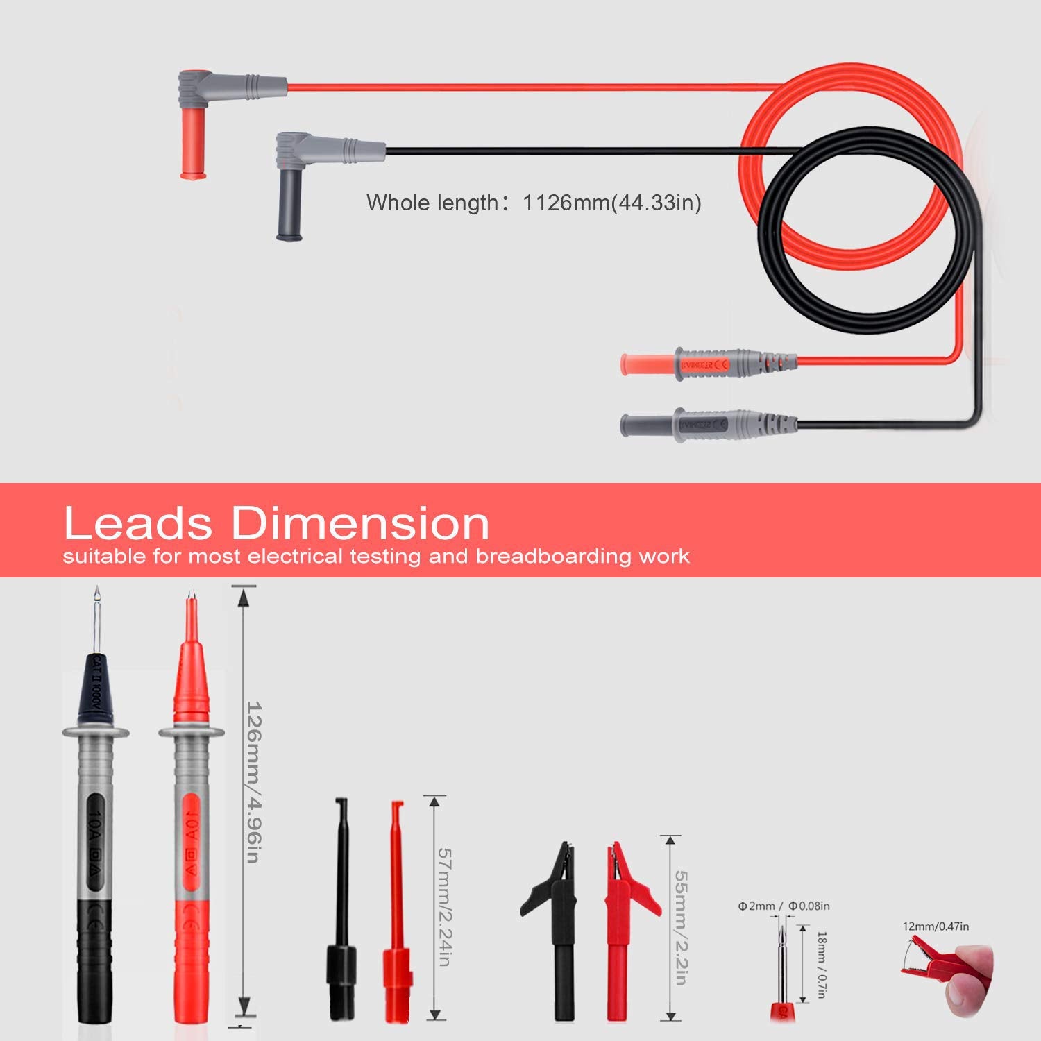 h1 classa-size-base-plus a-text-boldAbout this itemh1ul classa-unordered-list a-vertical a-spacing-minilispan classa-list-itemSECURITY LEVEL AND HEAVY DUTY - It is safe to test CAT III 1000V ampCAT IV 600V rated current 10A current, perfectly fits all kinds of multimeters like clamp meters, digital multimeters, table meters. spanlilispan classa-list-itemUNIVERSAL COMPATIBLE - With three different connectors that can be replaced alligator clips, needle probes and mini-hooks, makes the test leads can meet different test needs. spanlilispan classa-list-itemHIGH-QUALITY MATERIAL - This test leads kit is made of silicone double insulated which is durable, non-toxic, environmentally friendly, will not be stiff after 24 hours in the refrigerator with the 48 wire is perfect for any multimeter and clamp meter. spanlilispan classa-list-itemWIRE CORE - Composed of 105pcs 0.001mm copper wires and nylon yarn give the test leads kit excellent Tensile strength and bending resistance, low resistance, electrical conductivity, it is good helper for electricians and electronic product repairers.spanliul